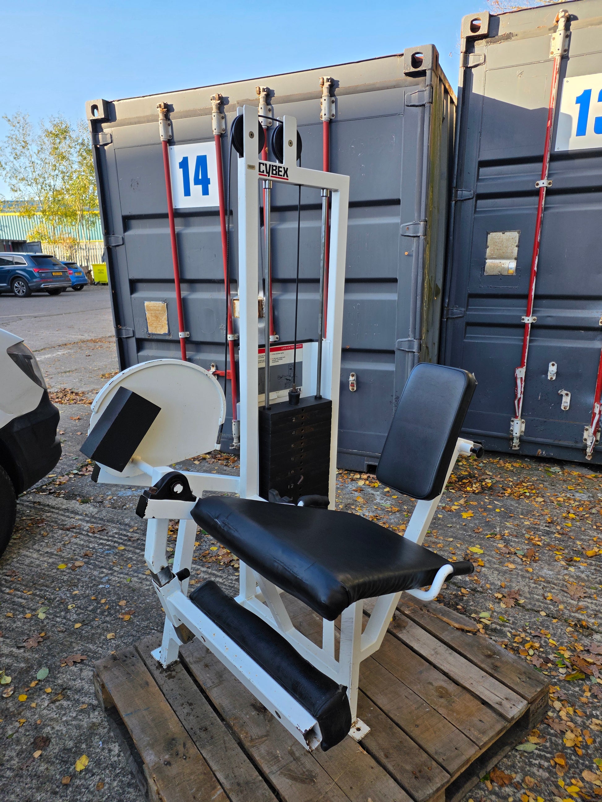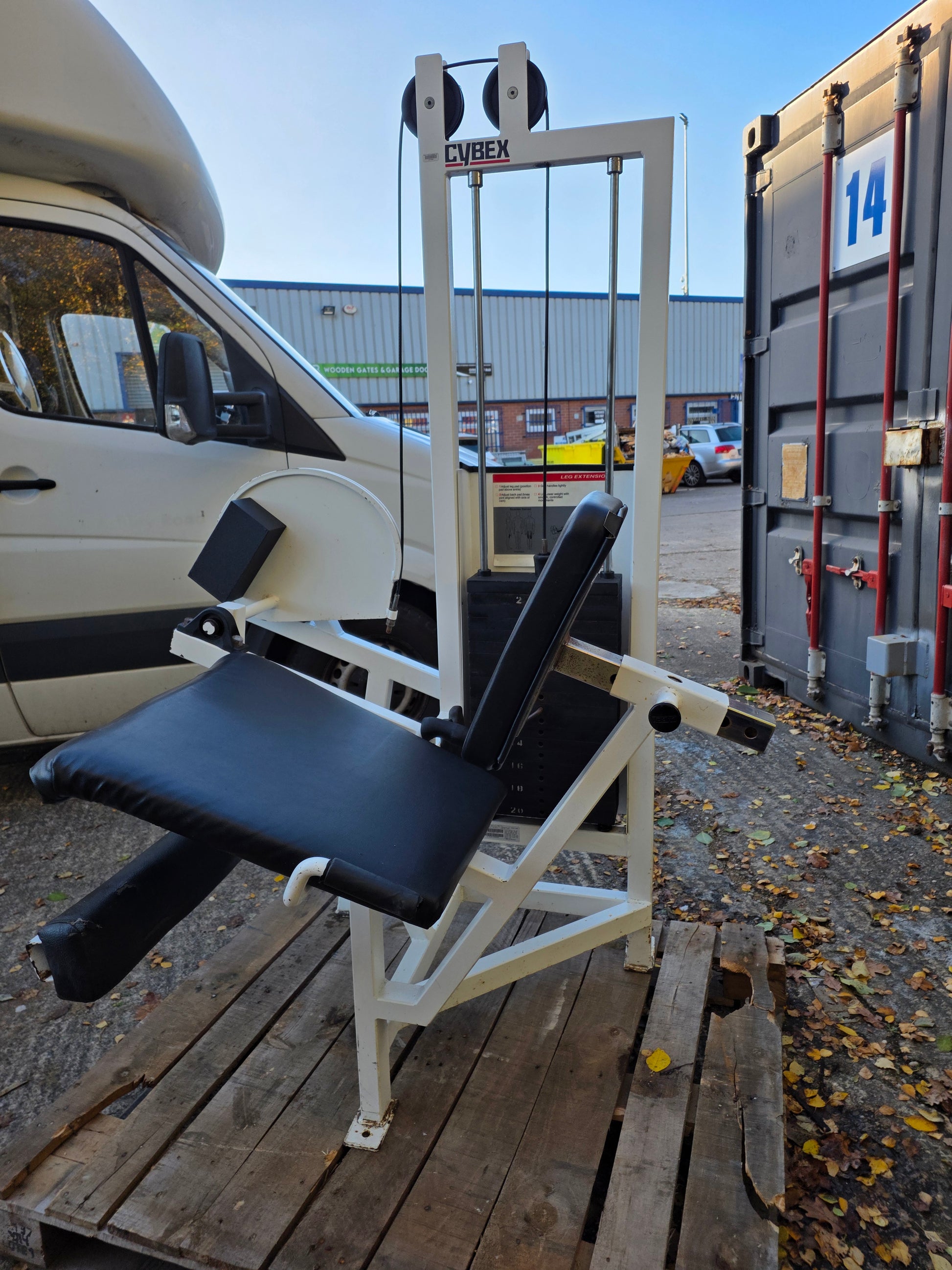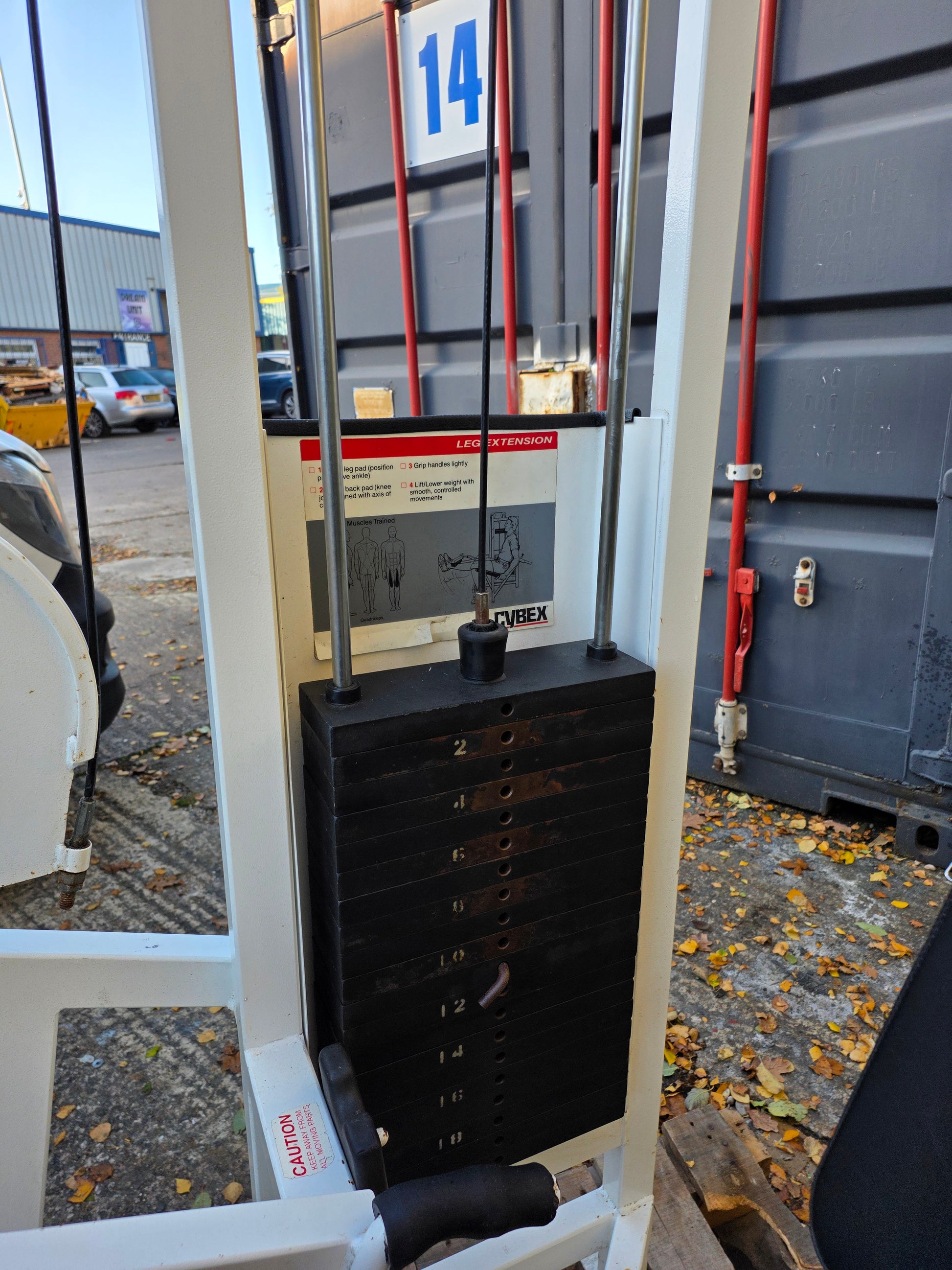 Here we have in stock an old school Cybex built for life leg extension machine. Heavy weight stack and very smooth movement. Adjustable foot pad with full range of motion for user.