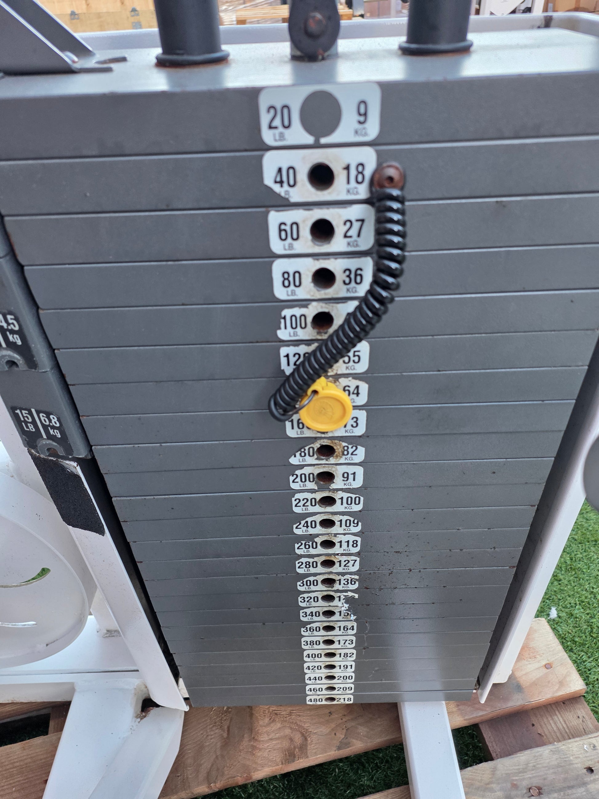 In overall great conditon for its age. Very heavy stack with increment stack available. Adjustable starting position and back pad.